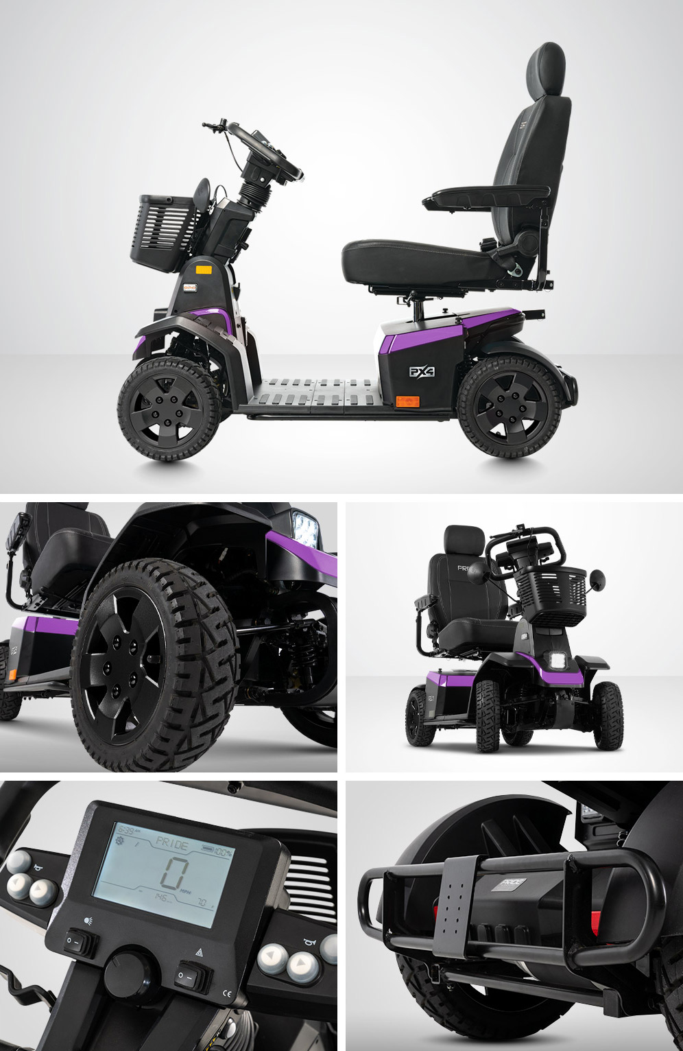 Full suspension and memory foam seating allow you to breeze over asphalt, concrete, gravel, and any hard-packed surface in ultimate comfort. The PX4 is your ideal travel companion, whether at the park or exploring urban cityscapes, day or night, thanks to a full LED lighting package.
