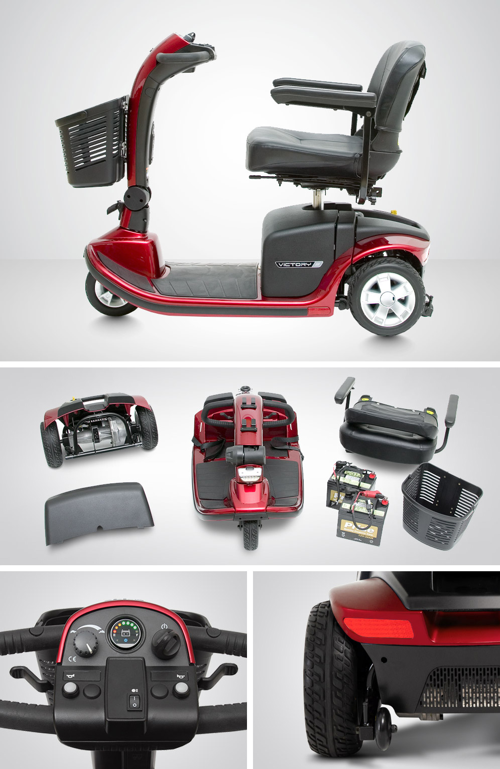The Victory® 9 delivers the high performance operation and feature-rich design of the Victory family of scooters. Exclusive low-profile tires, back-lit battery gauge, and wraparound delta tiller all combine to make the Victory 9 and exceptional value.